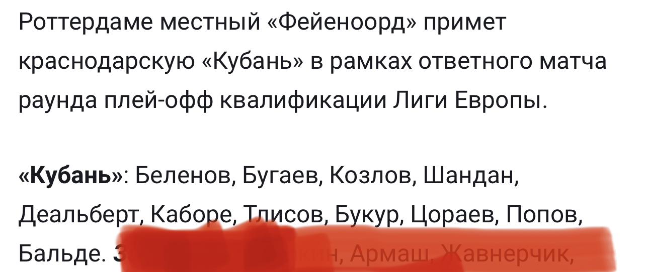 Я заметил одну хрень, и это меня мучает: я не запоминаю игроков Кубани, последние лет пять. Конечно, есть Байрыев и был Лобкарев,, у них в основном, косяки помню. Остальные, как сон незатейливый, проходят) Где наши плошники, шитиковы, букуры и ленгиелы? За кого болеть персонально? Или косяпор или уйдет в следующее трансферное окно) И тут еще десяточку Малярова отцепили)