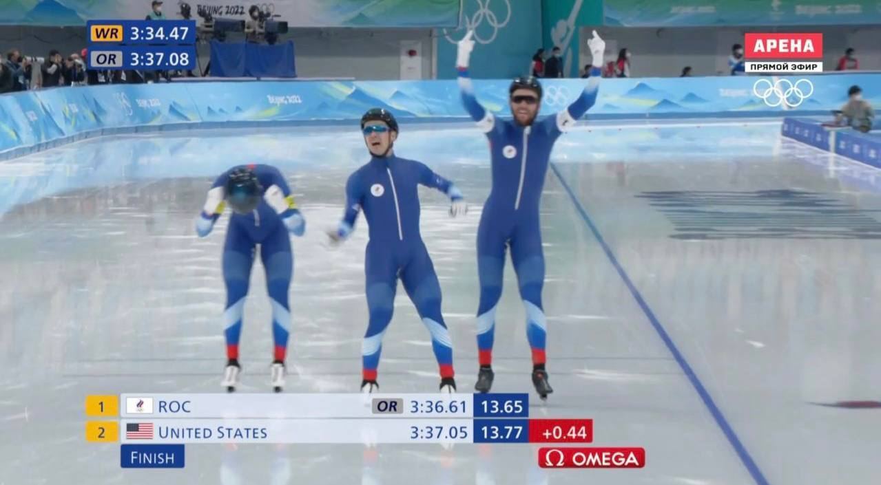 Конькобежец Даниил Алдошкин показал неприличный жест после победы над американцами