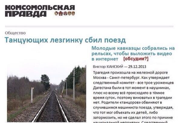 Танцующих лезгинку сбил поезд! По словам родственников машинист сбил специально ведь поезд мог объехать нн трамвай же https://pbs.twimg.com/media/BeQ6L6xIQAA3NXm.jpg:large |
