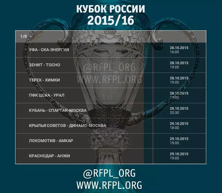 Определено время начала матчей 1/8 финала Кубка Россииhttp://www.sports.ru/football/1033831312.html