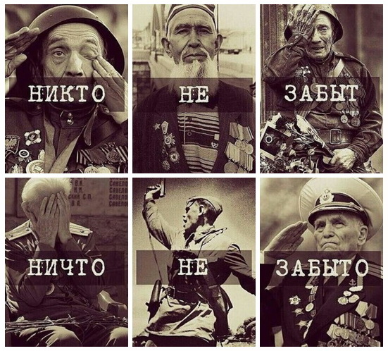 Это НАША общая Победа!!! Эта война коснулась наверное каждой семьи.Кто-то из наших дедов и прадедов воевал,погиб,или пропал без вести,кто-то был в плену или в нацистских концлагерях.Многие трудились сутками в тылу,недоедая голодали,и ковали победу у станков и в полях... Чем им не угодил этот главный праздник в нашей истории? Неужели для них День Победы опять "неправильный праздник",или победа над фашизмом им "как серпом по одному месту"? Этот общий для нас праздник должен объединять всех,несмотря на политические взгляды и либерастические пристрастия. ВСЕХ с Днём Победы!!! |