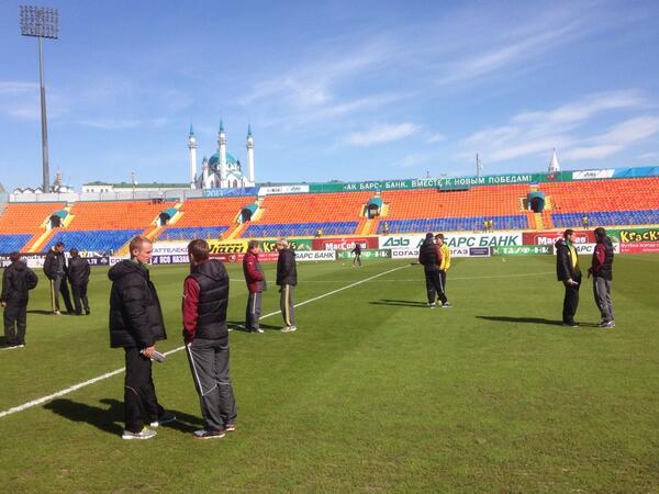 Забавно: Рубин и Кубань вышли одновременно на поле, разбились по парам, по одному из разных команд, и болтают. https://pbs.twimg.com/media/BlGHk5jIUAAIkwo.jpg |