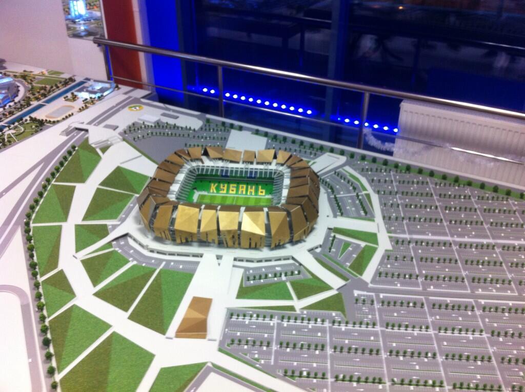 Последний абзац статьи "В Краснодаре будет новый футбольный стадион!" с сайта администрации края: "Уже отобраны 4 проекта нового стадиона. Александр Ткачев и Олег Мкртчан предложили болельщикам клуба вместе выбрать самый лучший и самый красивый. Примерно через месяц такой выбор будет сделан. А строительство самого стадиона начнется во второй половине 2013 года". А вот фрагмент статьи с офсайта ФК "Кубань" "Новый дом "Кубани": "Сроки строительства - 3-4 квартал 2014 г., все зависит от формирования проектной документации. Окончание строительства - 3-4 квартал 2016 года". Автор цитаты: Виталий Марченко – заместитель директора ЗАО "Кубань-Арена", которое непосредственно занимается реализацией проекта будущего стадиона. |