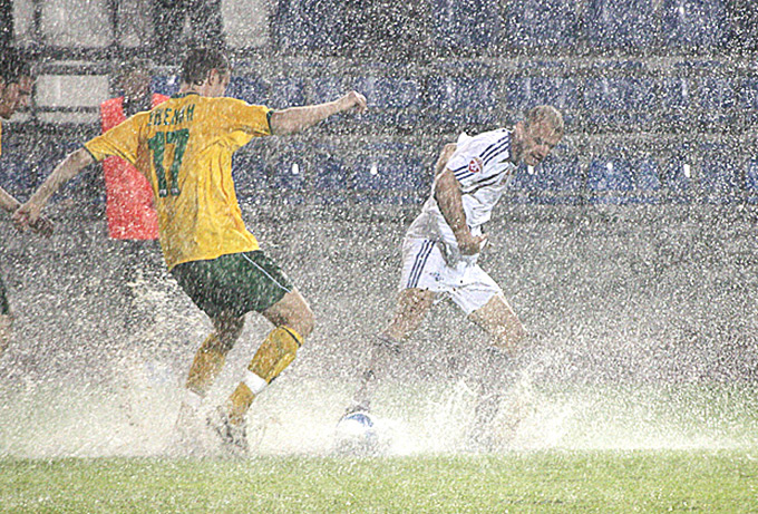 Сплюнь. Гудвин правильно написал. Будет сильнейший ливень, гроза. Футбол скорее всего заменят на регби, а футбольный мяч на ватерпольный.